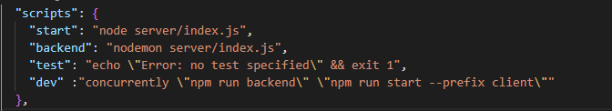 root 디렉토리의 package.json 의 scripts 부분에 dev 라는 스크립트를 추가해주고