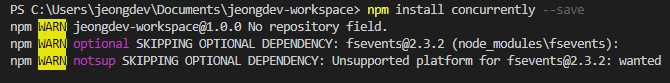 맨 앞에 concurrently 선언해준뒤 실행명령어를 나열해주면 끝!