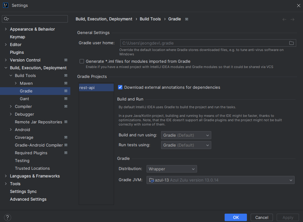 File > Settings에 들어가서 JVM을 확인해준다.