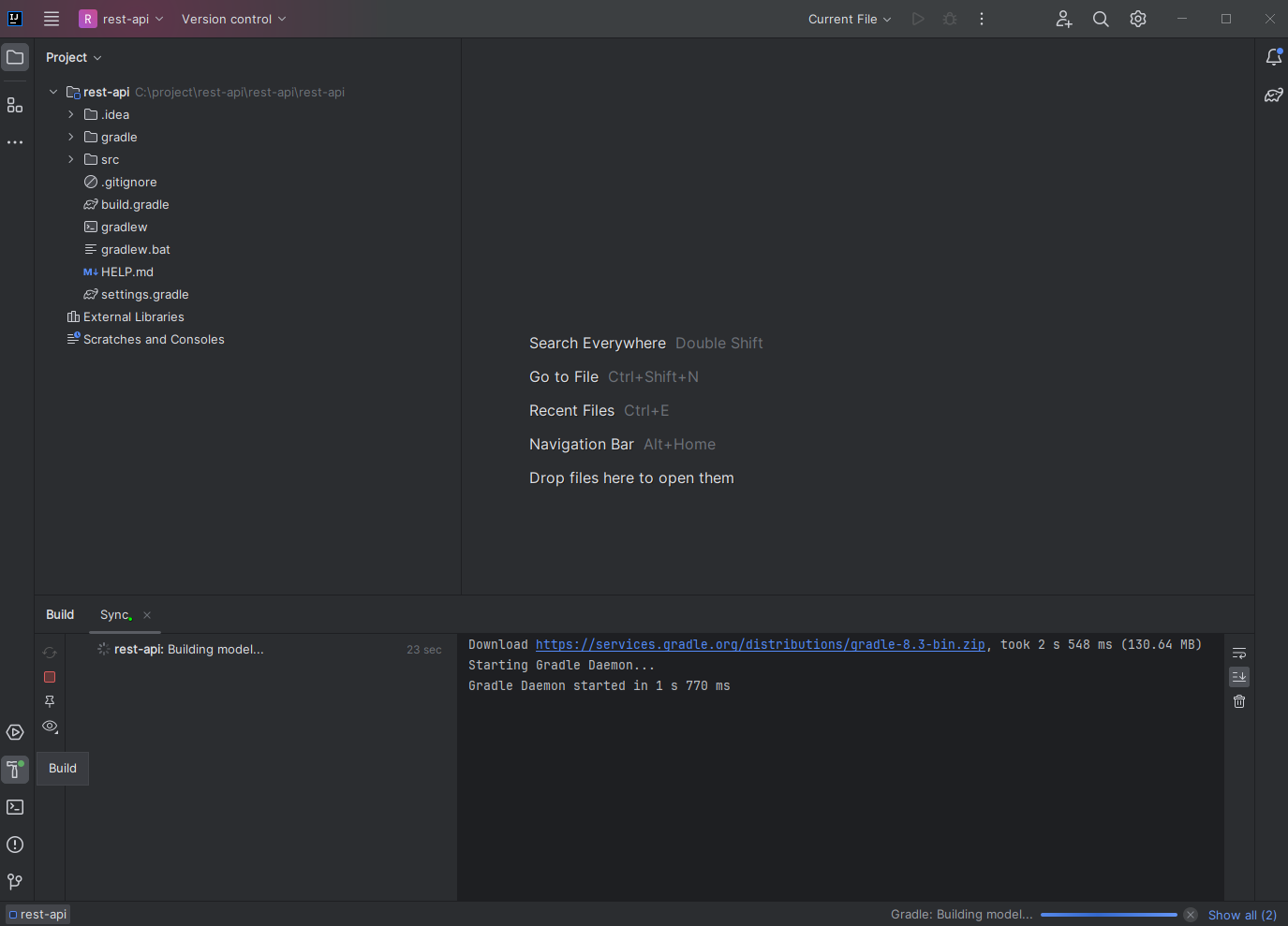 프로젝트를 열면 Build가 진행중이기에 잠시 대기한다.