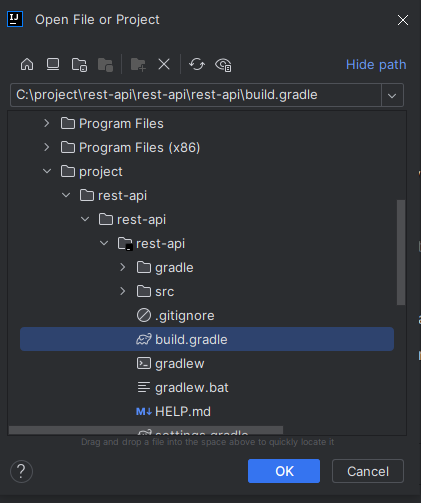프로젝트 폴더 안에 있는 build.gradle 선택 ok