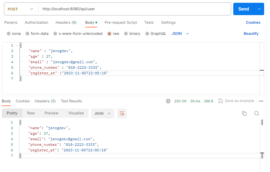 정상적인 데이터를 삽입한경우에는 정상적으로 데이터를 가져오는 것을 확인할 수 있다!!