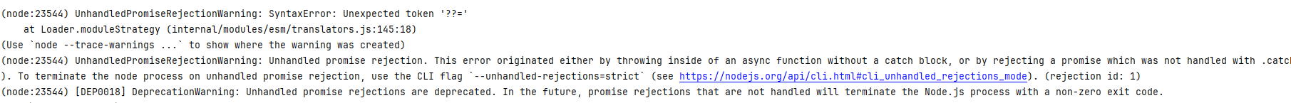 UnhandledPromiseRejectionWarning: SyntaxError: Unexpected token '??='