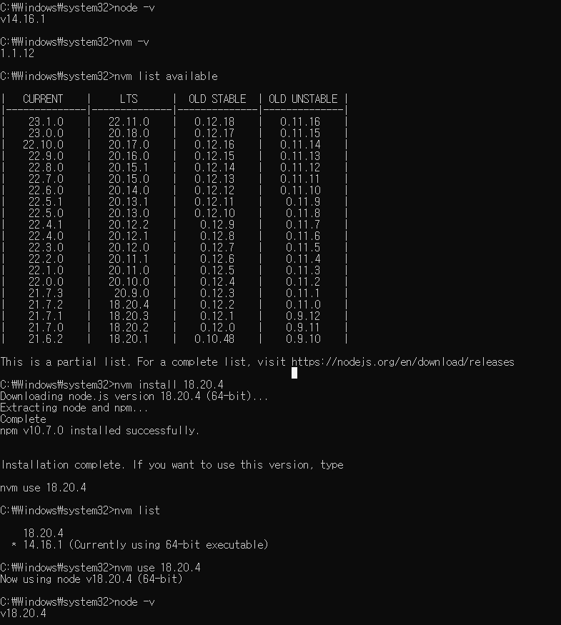 window 에서 node.js 버전을 쉽게 바꿔주기위해