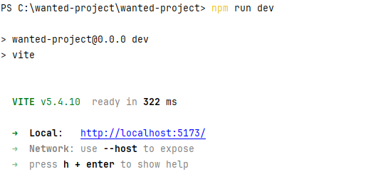 이후에 다시 프로젝트로 돌아와서 npm run dev
