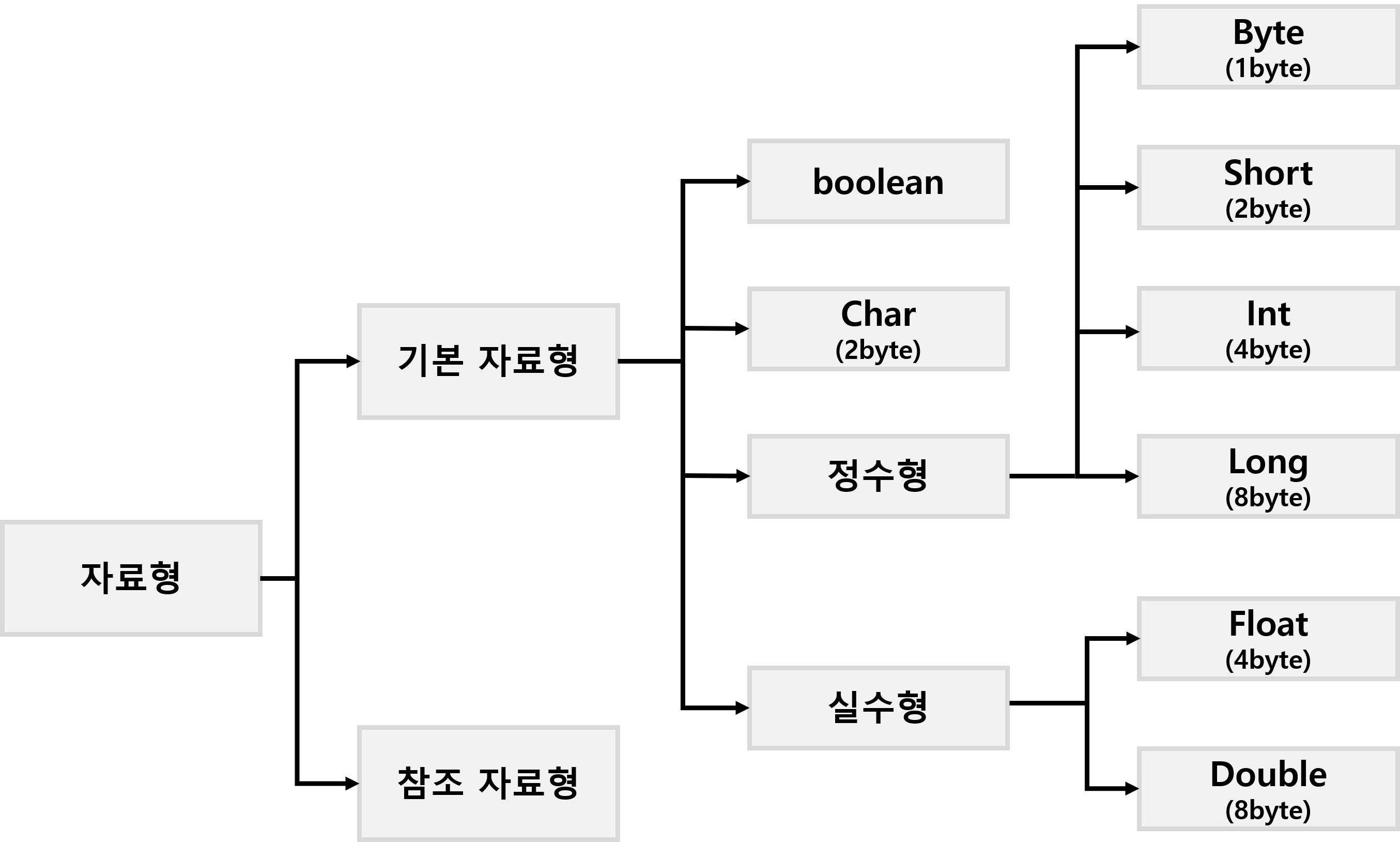 기본자료형은 boolean, char, 실수형으로 나누어지고