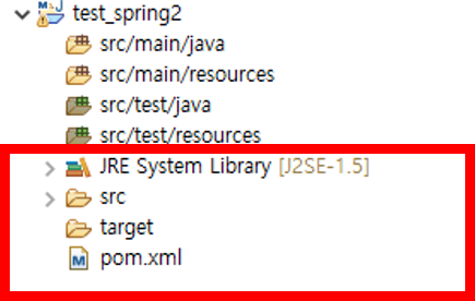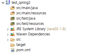 생성하게 되면 아까와는 다르게 휑~ 한게 보이시나요!? 따로 Maven 라이브러리를 추가하지 않아서 그래여!