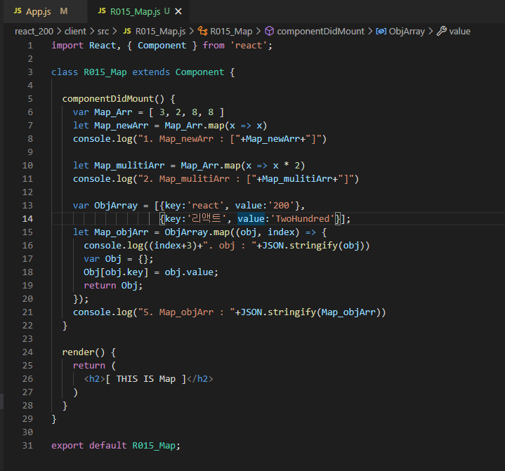 차이점으로는 map()은 forEach()달리 return을 사용해 반환값을 받을 수 있다는 것이다.